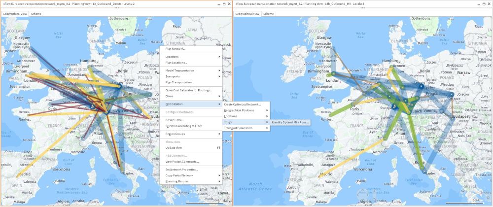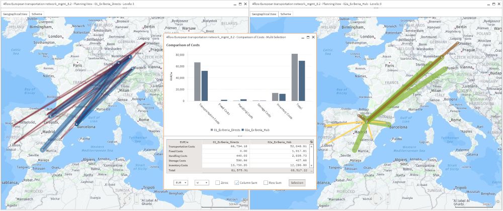 O software 4flow vista® de planejamento de transportes permite que os usuários determinem a estrutura ideal das redes de suprimentos, produção e distribuição. Um modelo realista da rede física cria transparência nos processos e estruturas existentes. Com base neste modelo, o software gera possíveis cenários e identifica a estrutura de rede ideal.